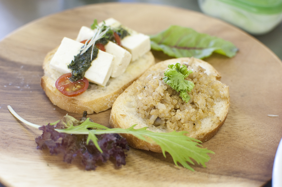 メニューは、キヌアとキノコ&豆腐とトマトのブルスケッタ、