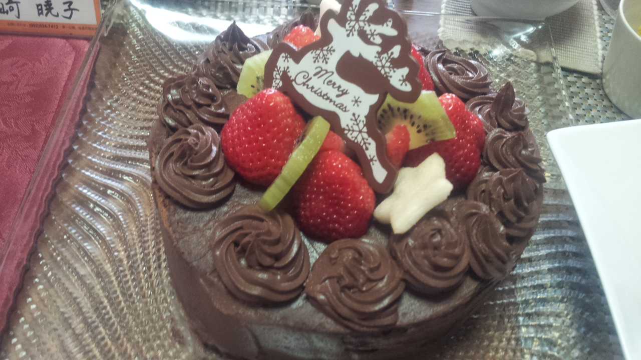 マクロビのショコラケーキも上出来~~(笑)、しっかりとしたクリームなので常温でも大丈夫なくらい。ココアのビターな大人のケーキです。