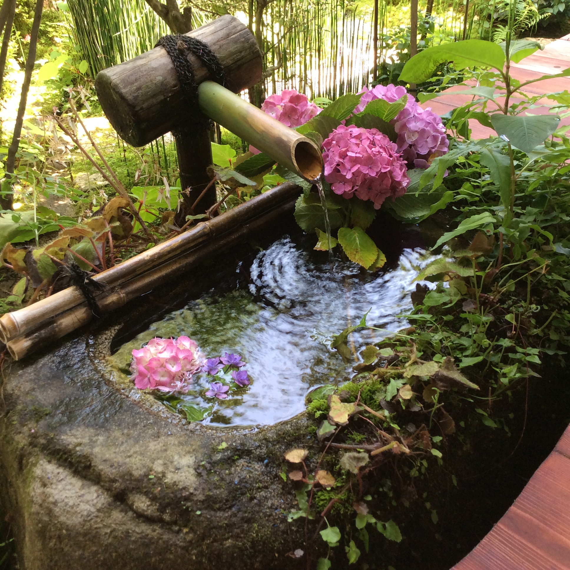 お寺の庭園。涼し気でいいな~。水の音を聞いているとホッとして緩んでしまいます。
