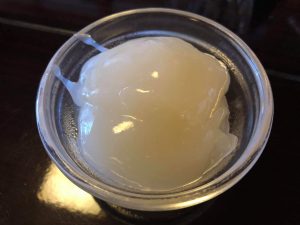 午後からは、玄米小豆甘酒、豆乳ヨーグルト、オートミール甘酒、甘酒ヨーグルトのスムージーと続き、お手当て法では、岡部先生のご指導のもと、久助さんが蓮根葛煉りを作って下さいました。もう、手早くて写真の通り、目にも止まらぬ動きですぐに出来上がりました!!
